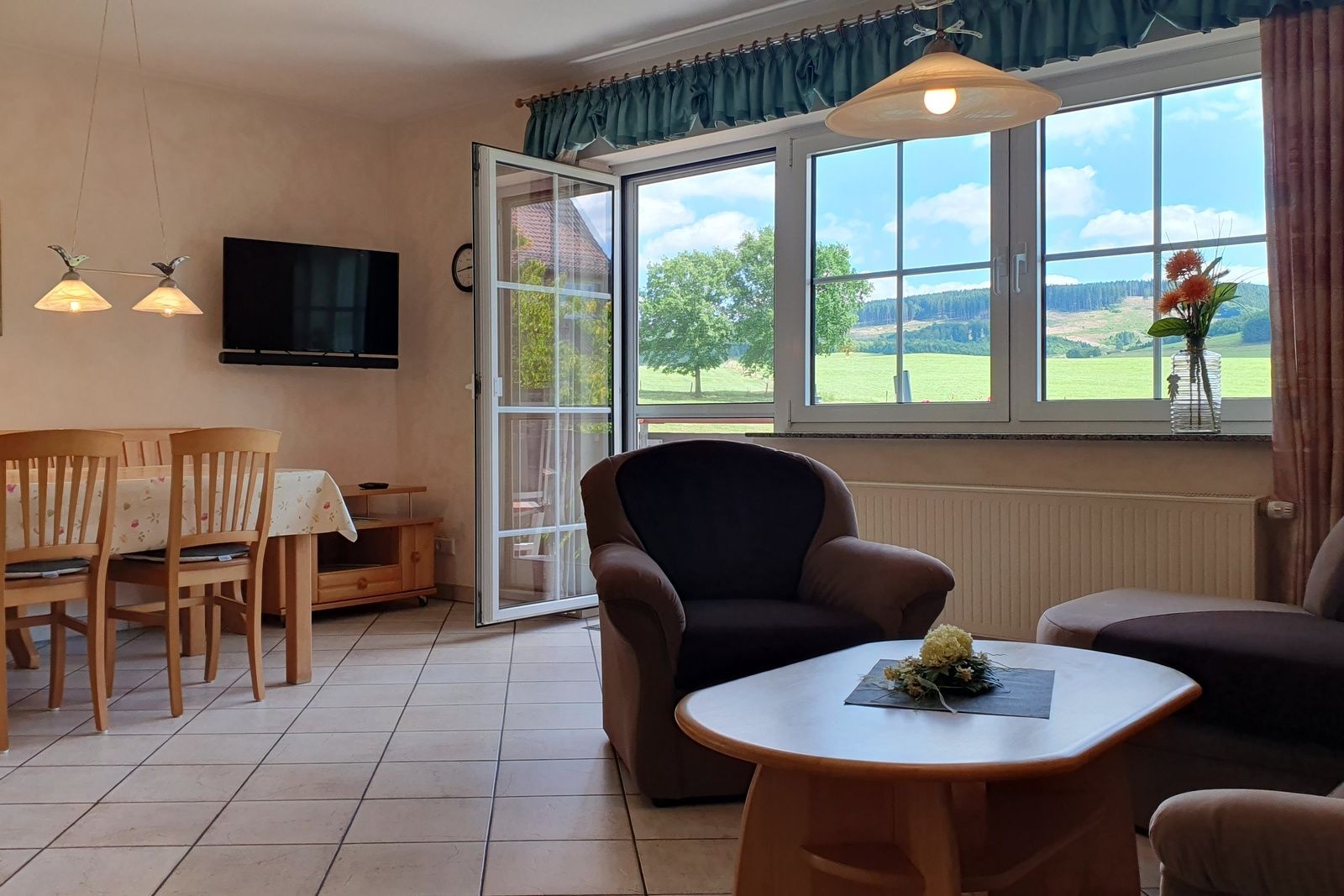 Mittelpunkt unserer geräumigen Nichtraucher-Wohnungen ist die große Wohnküche mit komfortabler Küchenzeile. Ein großer Esstisch und der gemütliche Wohnbereich bieten genug Platz für die ganze Familie oder mehrere Erwachsene. Auch der Schlafbereich lässt keine Wünsche offen. Auf Balkon oder Terrasse genießen Sie die Sonne und freuen sich über den weiten Blick ins Grüne!