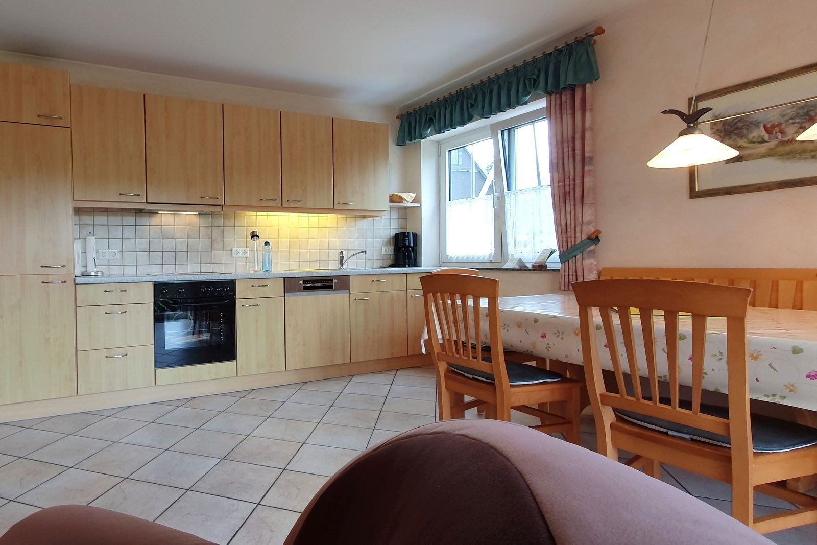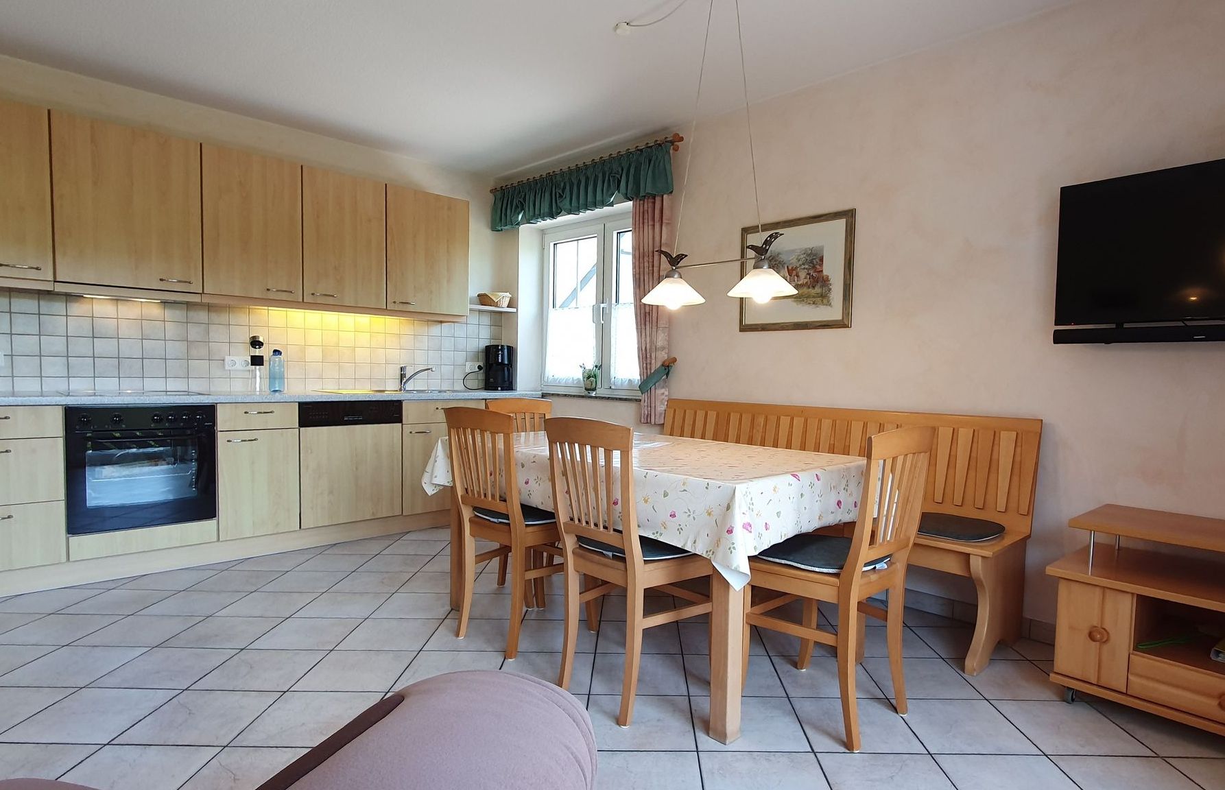 - Küchenausstattung: Kühl- und Gefrierschrank, Spülmaschine, Backofen, Elektrogeräte, ausreichend Geschirr