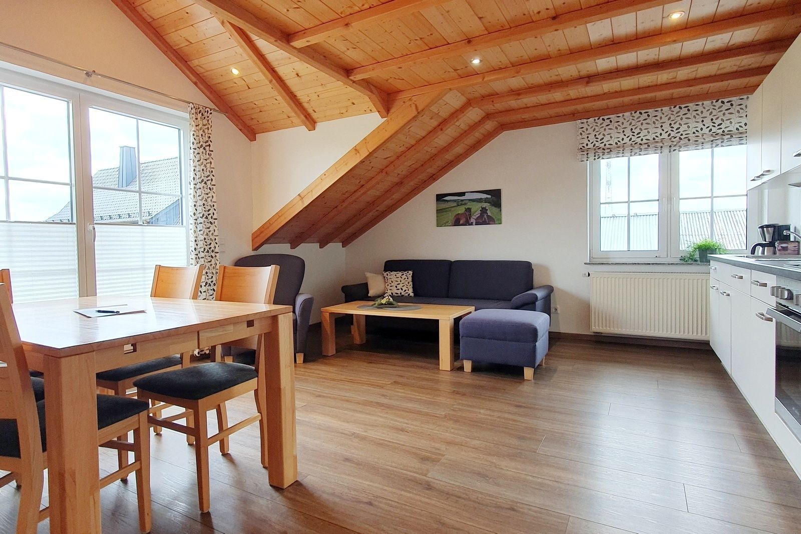 - großer Wohnraum mit Küchenzeile und Essbereich