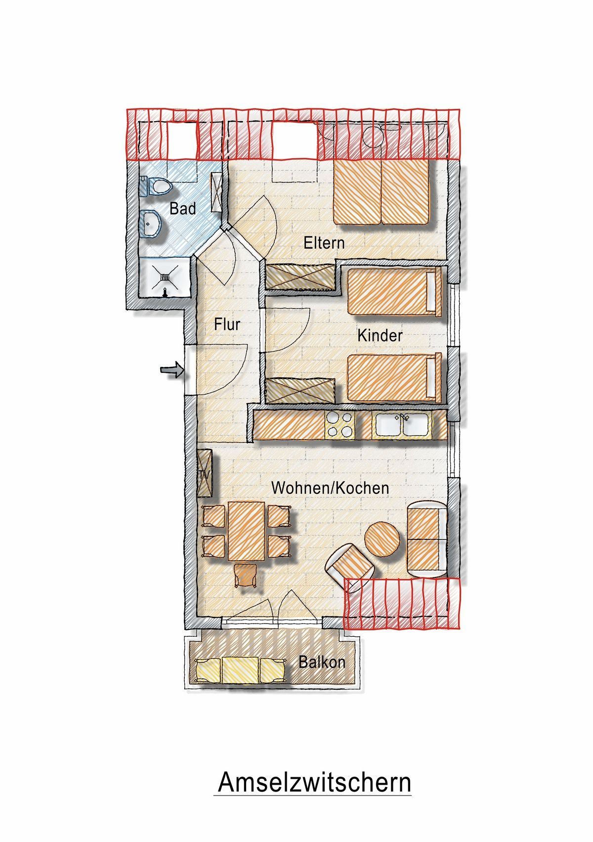 - 2. Obergeschoss,60 m², für 2-4 Personen