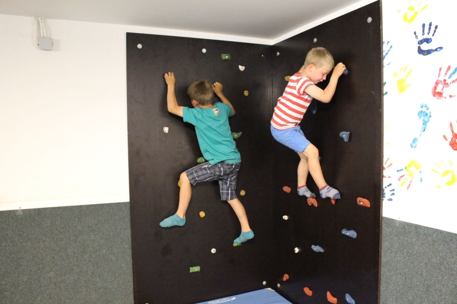 Nach Herzenslust klettern ohne tief fallen zu können. Das lieben Kinder. An der Boulderwand und am Klettergerüst stellen sie ihr Können unter Beweis.