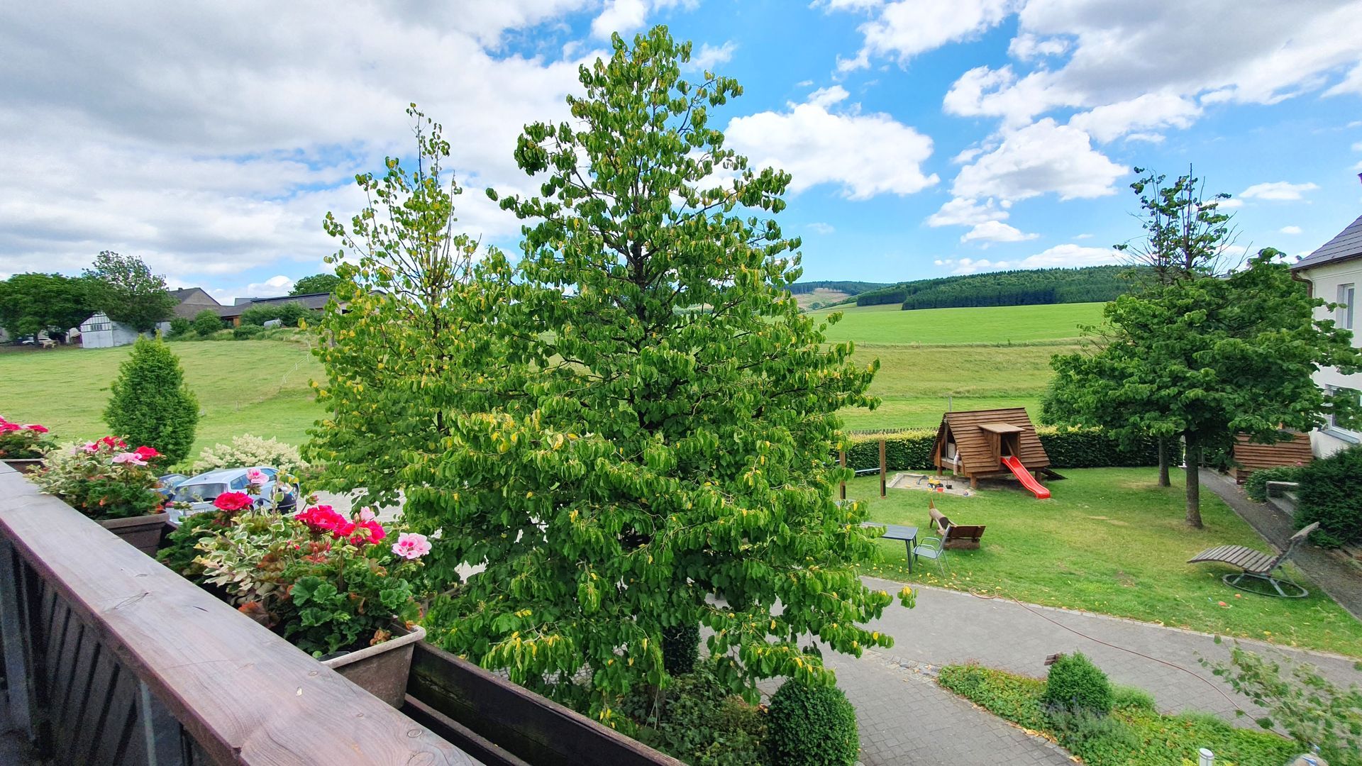 - Balkon mit Blick auf den Spielplatz